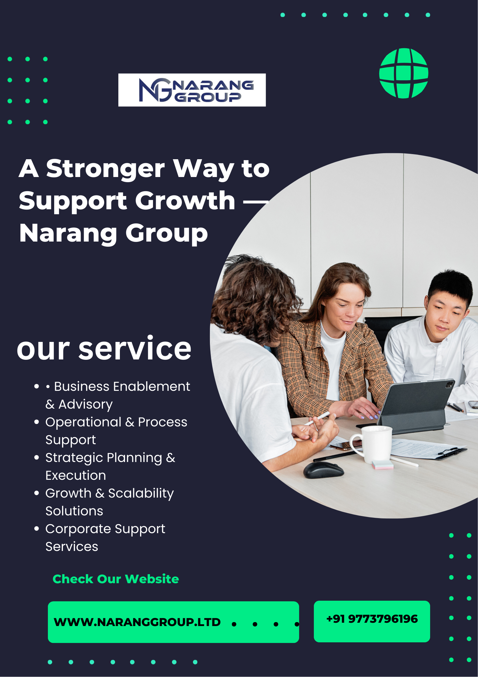 Narang Group represents a modern approach to business support—focused on structure, strategy, and long-term stability. Rather than offering short-term fixes, Narang Group works alongside organizations to strengthen operational foundations, improve efficiency, and support sustainable growth. Every solution is designed with clarity, professionalism.